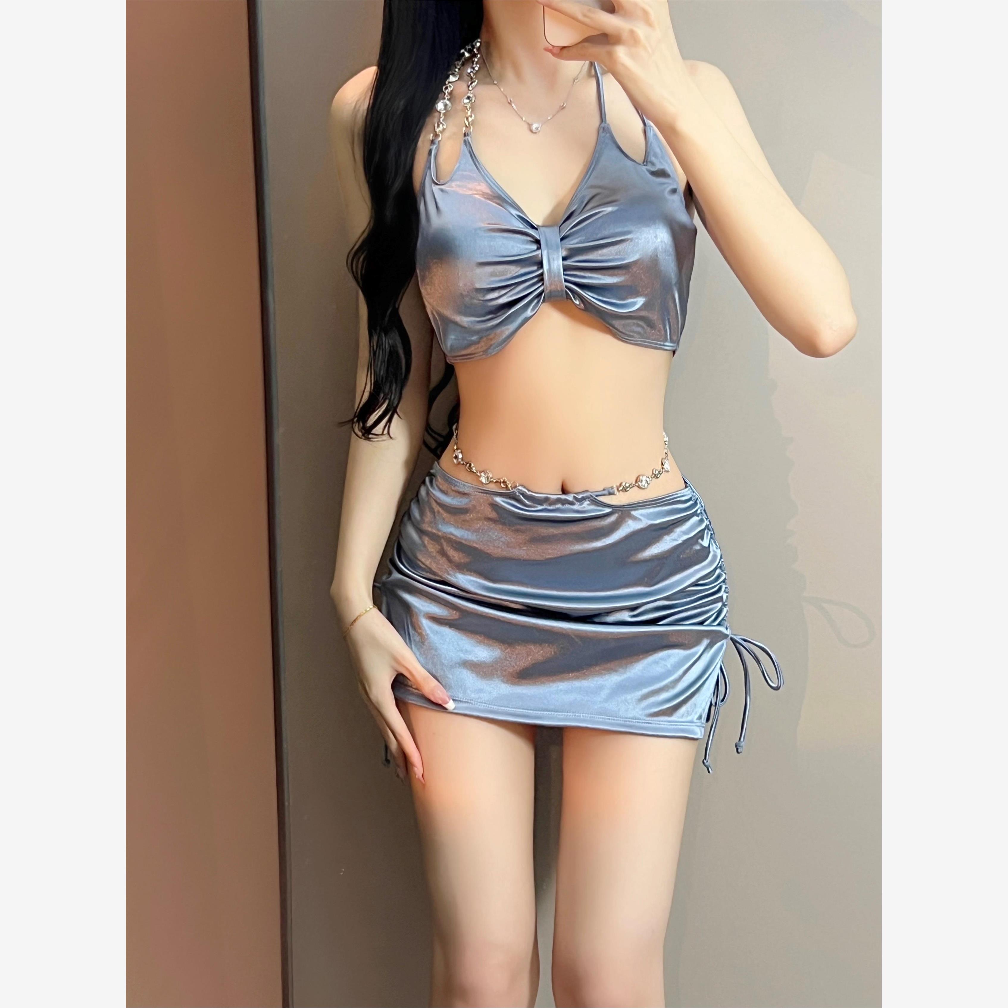 泳衣女三件套遮肚顯瘦性感比基尼高級感銀色純欲風泡溫泉泳裝度假