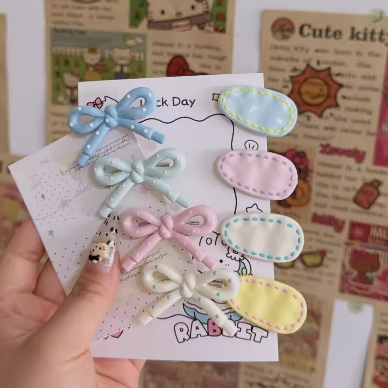 可愛波點蝴蝶結手繪線條小水滴鴨嘴夾ins簡約百搭劉海邊夾女