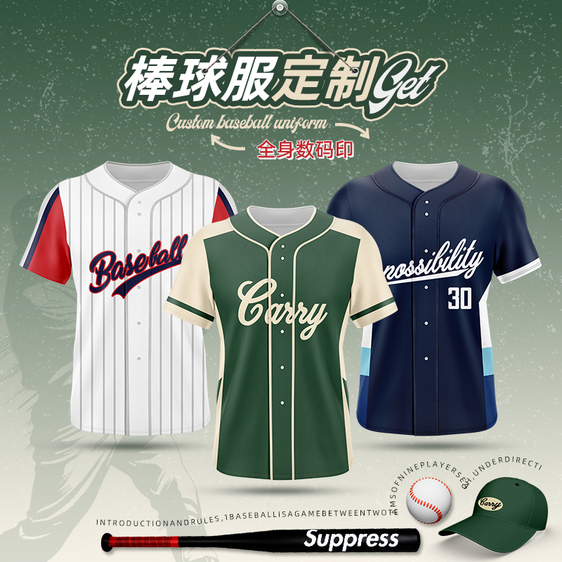 棒球服定制短袖套裝運動街舞比賽訓練服帶扣個性美式棒球開衫球衣