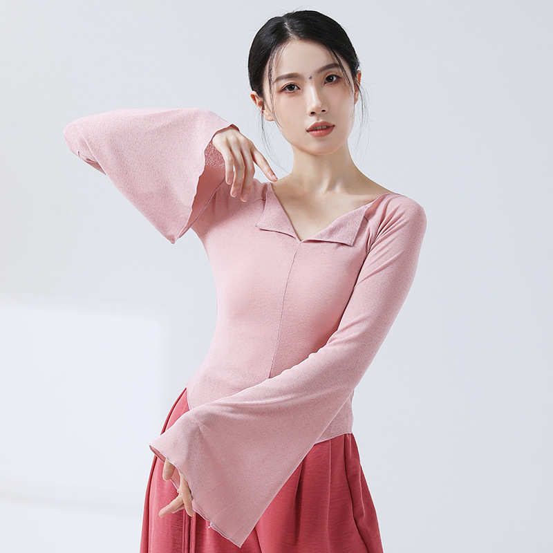 古典舞現代舞基訓形體服打底衫喇叭袖中國民族風舞蹈日常練功服女