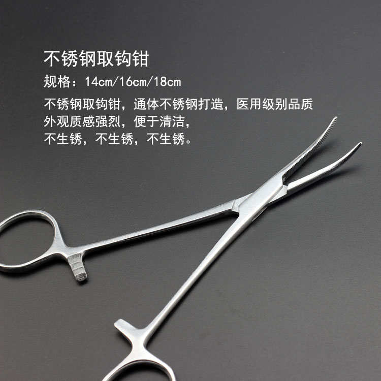 不銹鋼取鉤鉗彎頭摘鉤器釣魚加長彎嘴止血鉗摘魚鉤鉗子鑷子脫鉤器