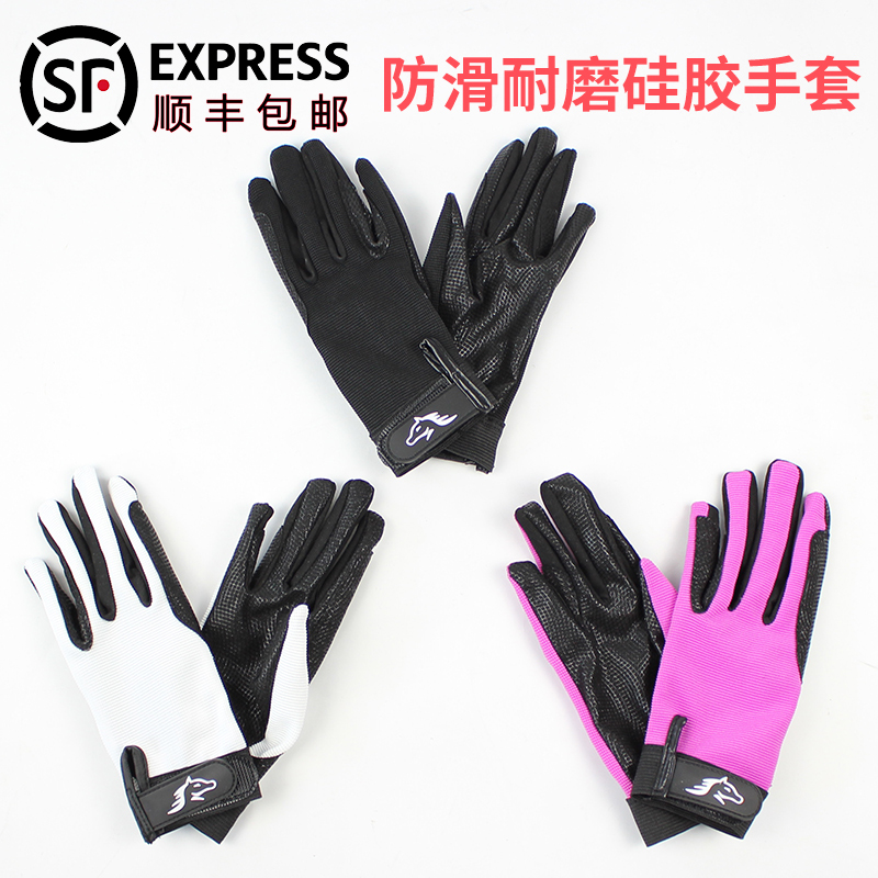 速發夏季馬術手套硅膠防滑耐磨騎馬手套戶外耐磨防滑馬術比賽白手
