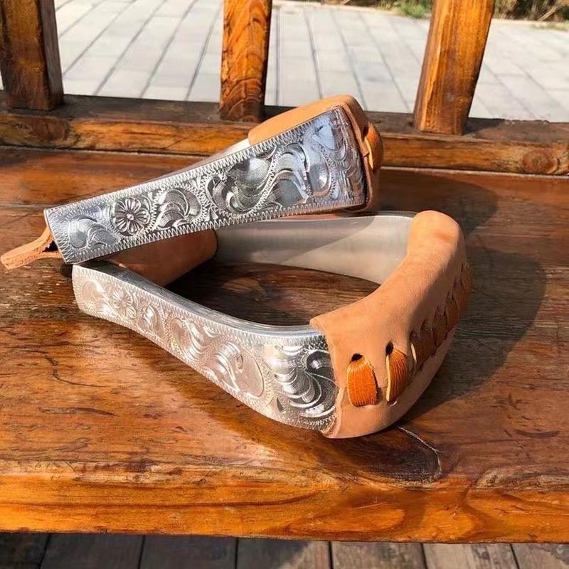 戶外西部鞍馬鐙安全馬蹬馬術馬鞍雕花馬腳蹬馬鞍配件鋁安全腳蹬