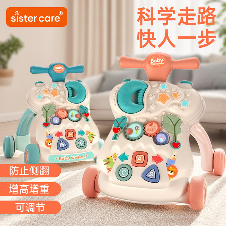 曼龍嬰兒學步車手推車可調速防O型腿防傾倒可坐帶牽引繩禮物玩具