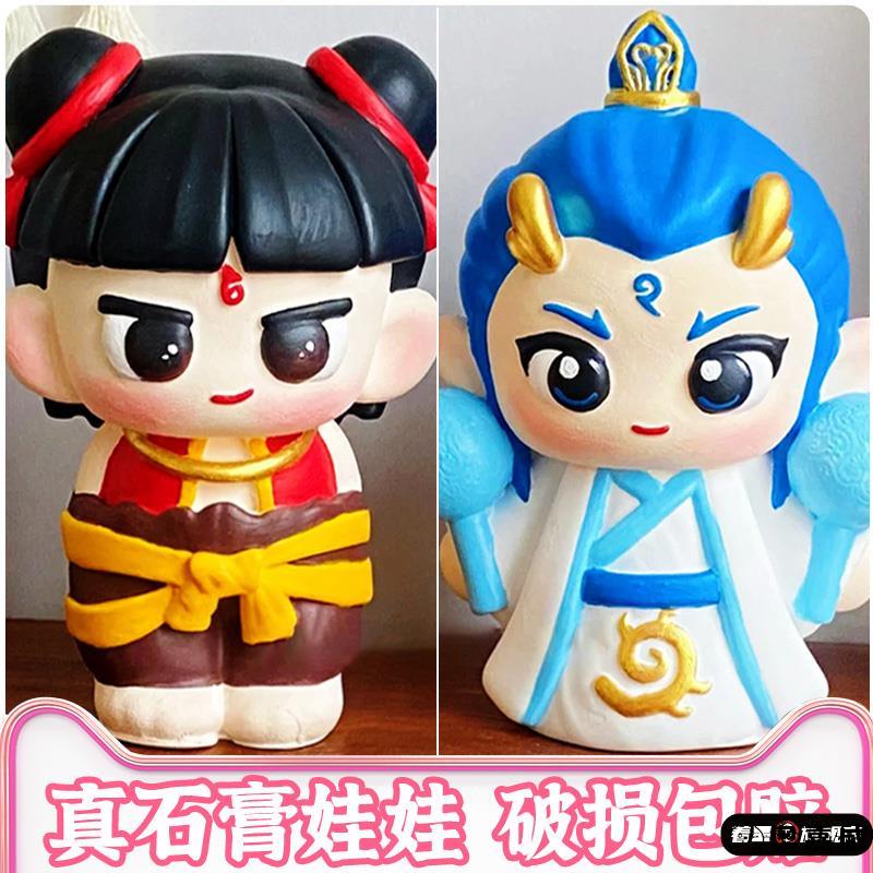 【批發10-90個】拉爆款布布擺攤哪吒涂色石膏娃娃白胚泡泡馬特