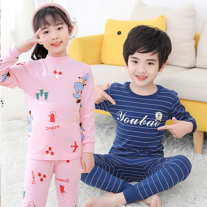 速發純棉兒童秋衣秋褲套裝男童女童卡通印花童裝中領圓領內衣四季