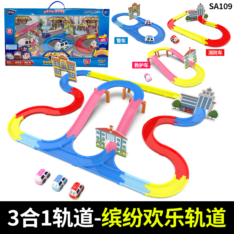 警車聯盟繽紛歡樂軌道車套裝小汽車賽車電動10秒快充男孩生日禮物
