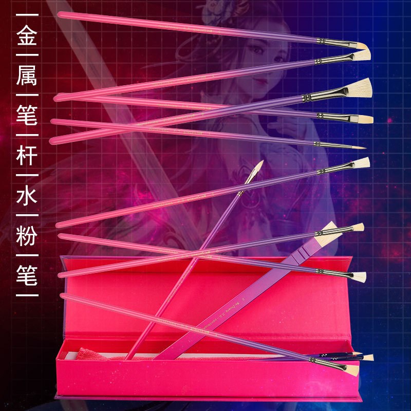 金屬水粉筆e豬鬃尼龍勾線筆丙烯油畫筆平峰圓扁峰扇形筆美術生專