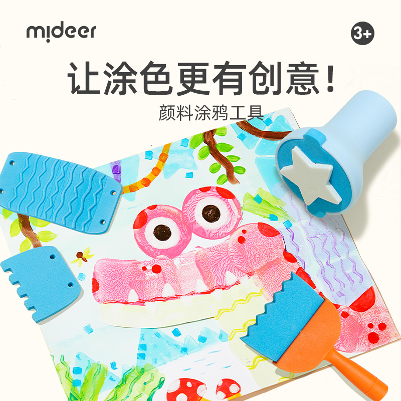 mideer彌鹿手指畫工具套裝兒童涂鴉顏料滾筒刷畫畫刷海綿印章拓印