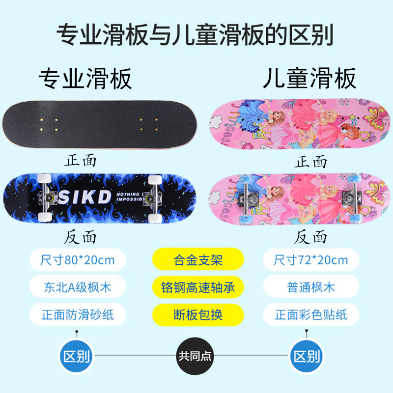專業滑板女生初學者雙翹板成人兒童8青少年代步四輪滑板車6到12歲