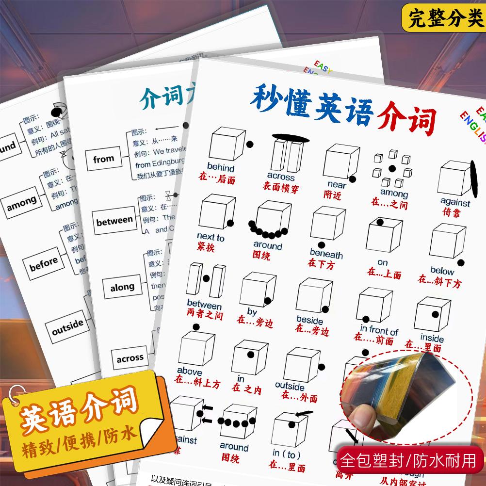 初中小學必背秒懂英語介詞卡片講解快速理解英語介詞學習塑封卡