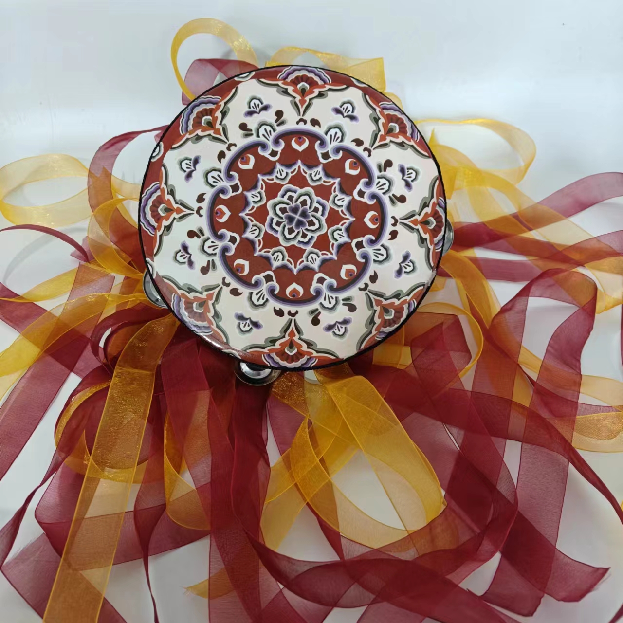 奧爾夫樂器7英寸飄帶鈴鼓敦煌舞蹈上鈴鼓表演道具新疆舞蹈考級