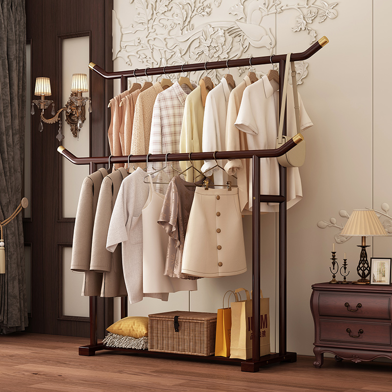 掛衣架落地臥室家用可移動雙桿置物衣帽架簡易收納架立式晾衣架子