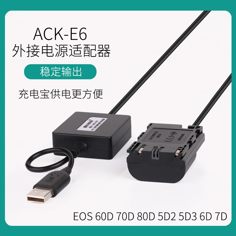 適用于佳能相機LP-E6假電池EOS 60D 70D 80D 6D 7D外接充電寶戶外直播 供電線 電源適配器