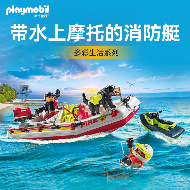 playmobile摩比世界帶水上摩托的消防艇兒童玩具71464