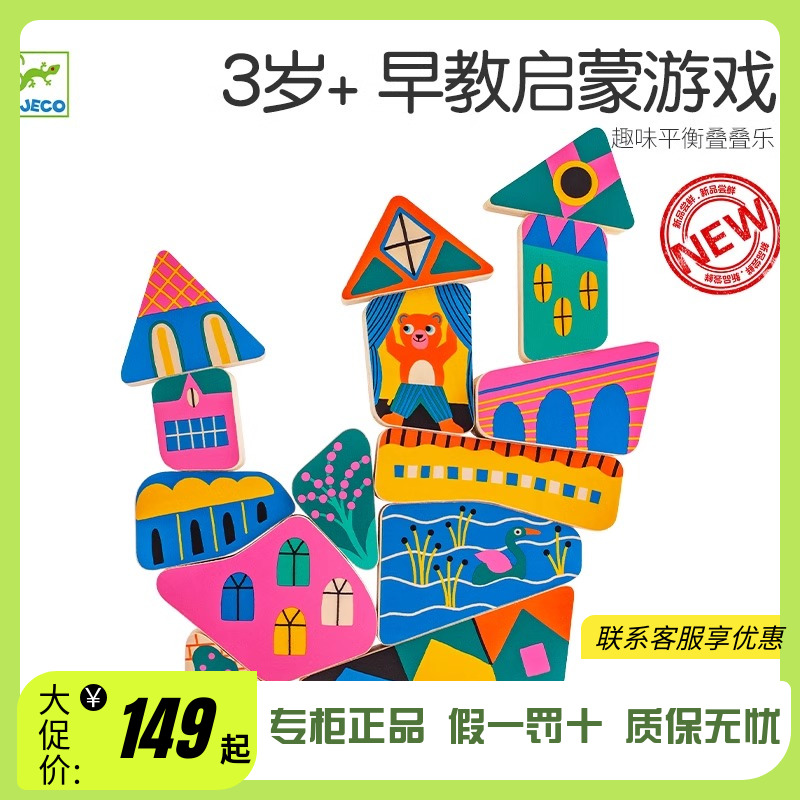 DJECO趣味建筑平衡疊高高游戲木制寶寶3歲疊疊樂積木益智兒童玩具