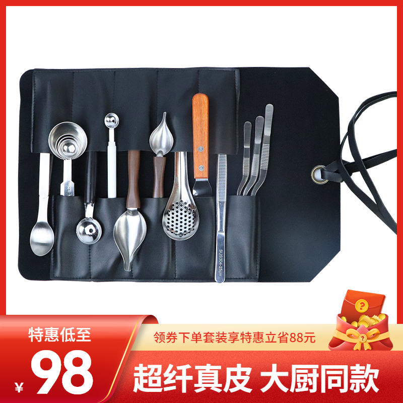 西餐擺盤工具套裝裝盤鑷子醬汁畫勺抹刀不銹鋼分子料理皮質收納包