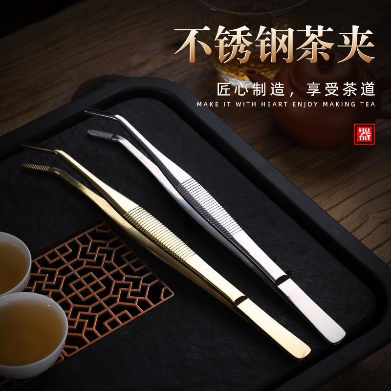 不銹鋼茶夾功夫茶具配件防滑茶杯茶葉夾子茶鑷子防滑茶道泡茶工具