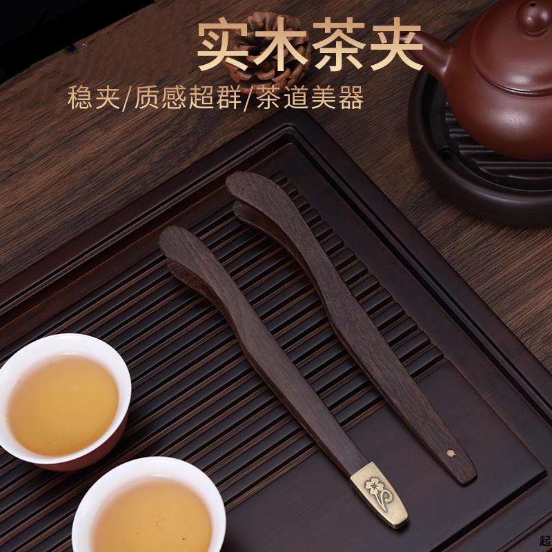 茶夾茶葉茶杯夾子黑檀木實木鑷子泡茶工具功夫茶具配件茶道六君子