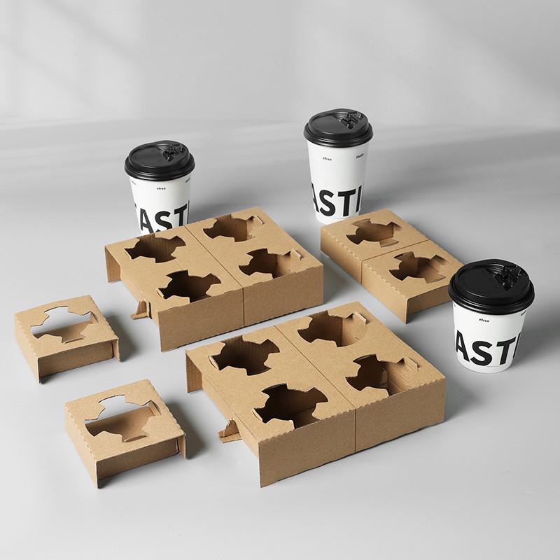 外賣杯托一次性打包底座咖啡奶茶飲料紙杯套托牛皮紙四單雙紙杯托