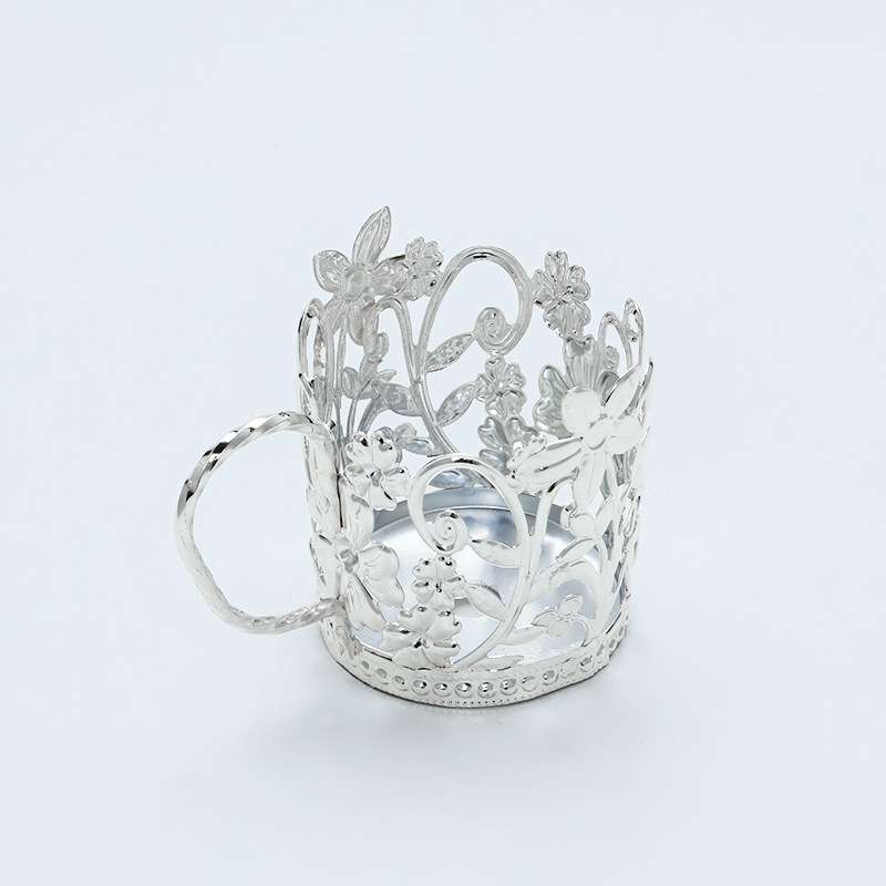 現貨爆款鐵藝紙杯架一次性水杯隔熱托銀色花邊家用杯套隔熱底座