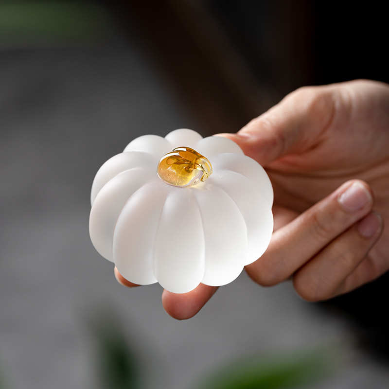 創意南瓜水晶玻璃小擺件茶寵功夫茶具配件茶壺蓋托玻璃蓋置