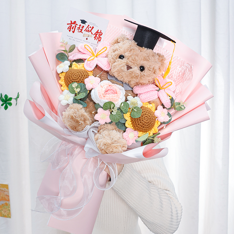 創意畢業生日禮物卡通玩偶娃娃毛線花手工針織向日葵虧花束送孩子
