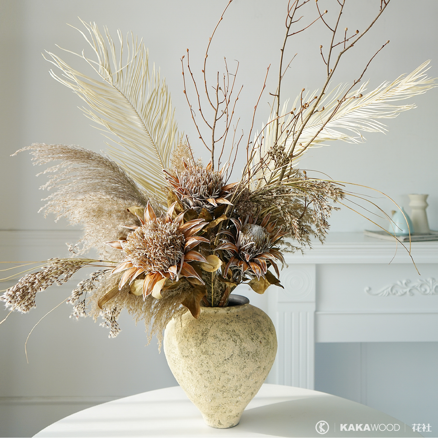 久伴侘寂中古天然干花真花束銀雛葵永生花客廳桌面家用裝飾擺件