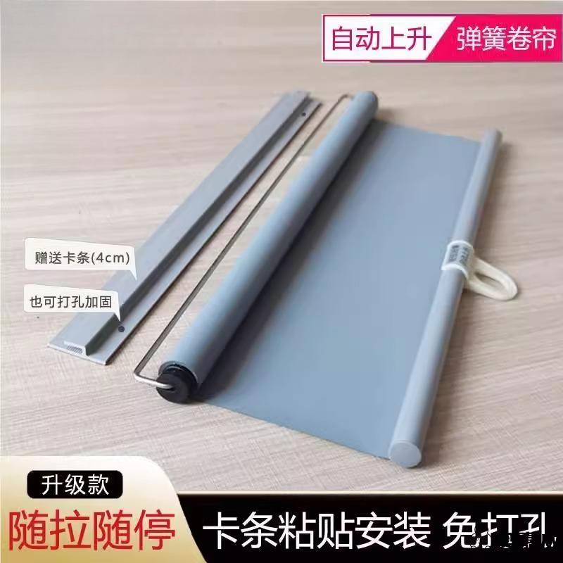 自動上升免打孔全遮光衛生間陽臺遮陽窗簾彈簧卷簾卡條粘貼可隨停