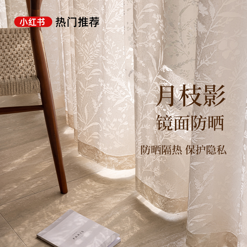 月枝影紗簾防刮輕奢高級感法式窗簾透光不透人遮擋簾飄窗臥室客廳