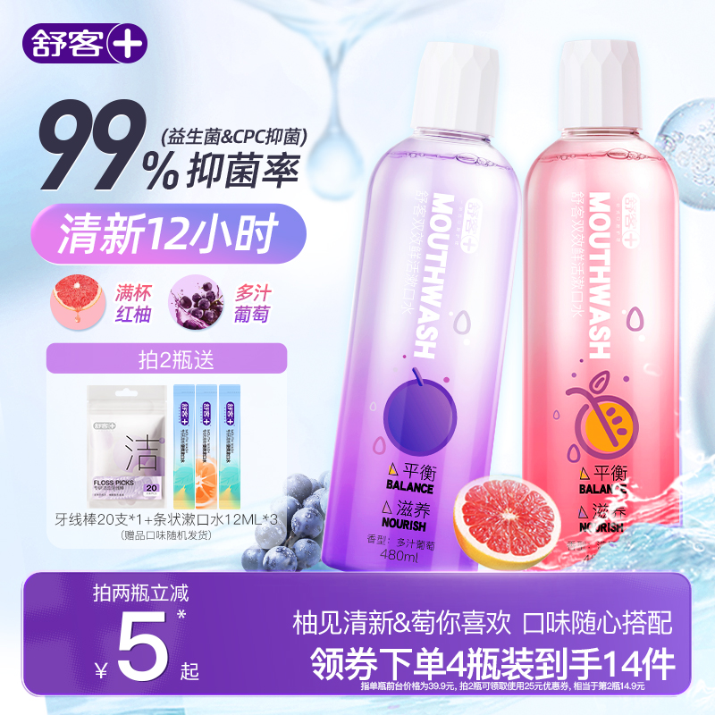 舒客益生菌瓶裝漱口水清新口氣口臭持久留香簌口水男女士清潔口腔