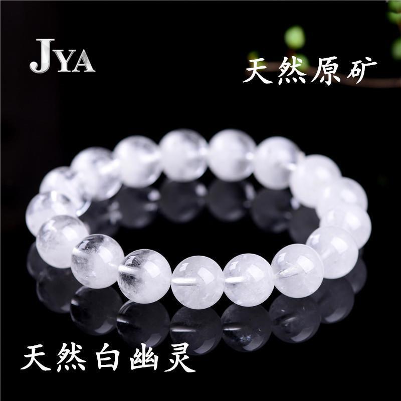 久雅水晶 天然白幽靈手鏈 聚寶盆白幽靈圓珠 DIY時尚飾