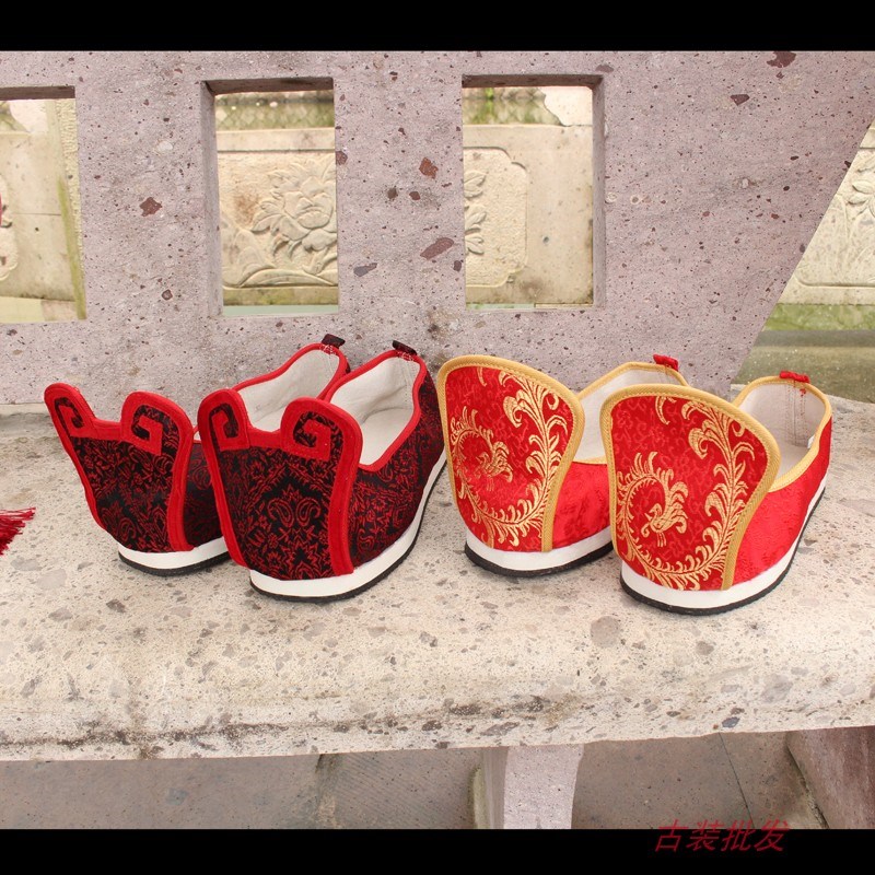 古裝鞋漢服婚g鞋男女翹頭履中式婚禮鞋影視平底內增翹頭鞋漢服鞋