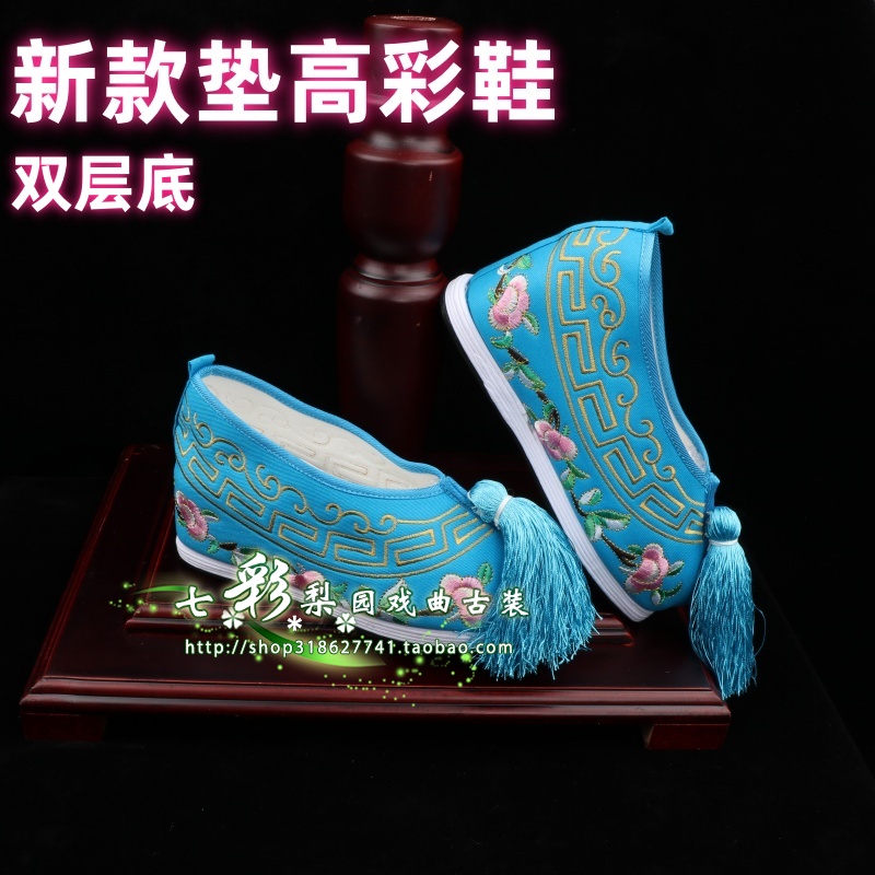 京越劇戲曲演出用品古裝黃梅戲舞臺表演練功斜紋布千層底繡花彩鞋
