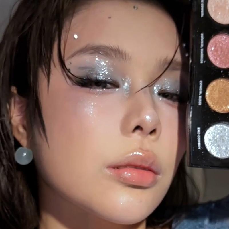 閃到姥姥家了!爆閃碎鉆眼影盤四色珠光亮片清透高光提亮牛郎織女