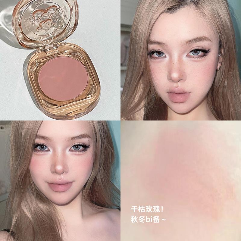 消腫玫瑰色!軟綿綿小熊腮紅自然修容高光低飽和膨脹色啞光氛圍感