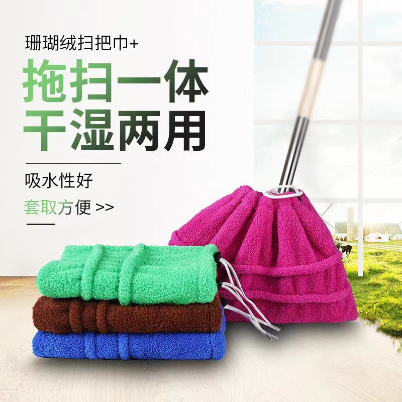 懶人掃把套布加厚珊瑚絨笤帚套子懶人抹布套吸水吸塵拖掃一體拖把