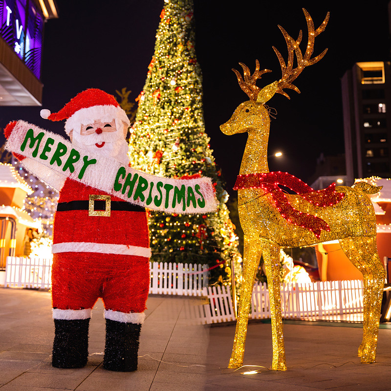 圣誕節裝飾小鹿擺件麋鹿鐵藝發光雪人老人2023新款1.5米造型場景