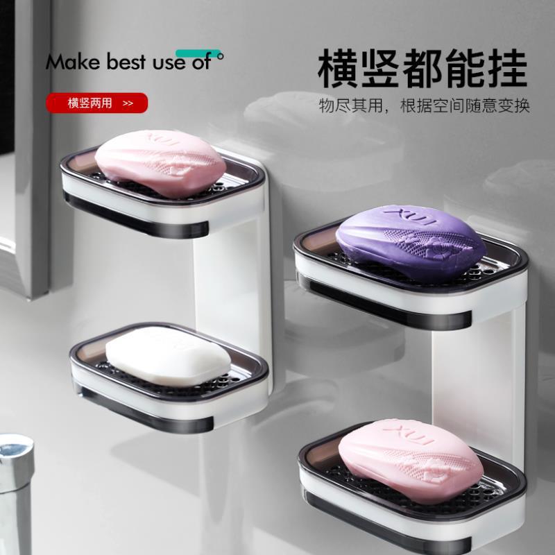 免打孔雙層肥皂盒創意家用掛墻香皂架衛生間浴室瀝水肥皂置物架
