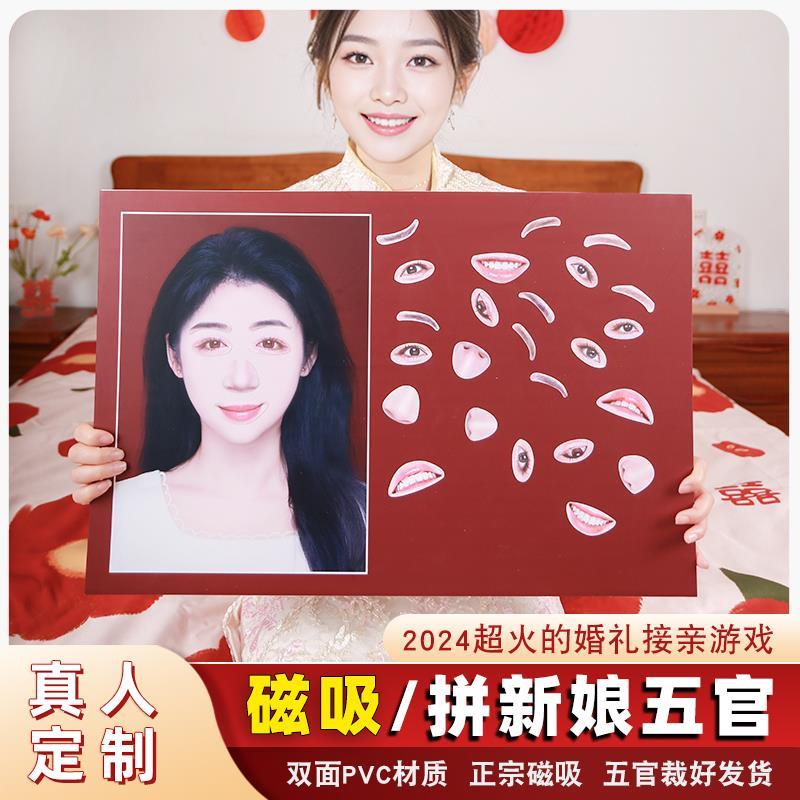 定制接親游戲拼五官磁吸道具結婚堵門小游戲搞笑婚禮新娘拼臉猜圖