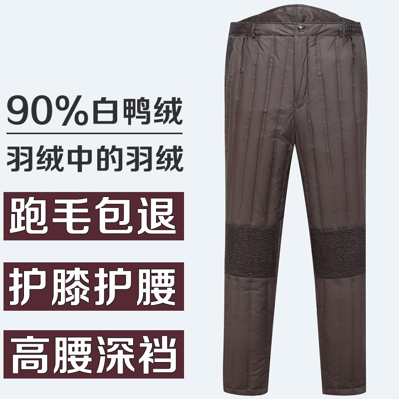 中老年大碼羽絨褲k男松緊高腰深襠保暖褲爸爸冬裝褲子爺爺羽絨棉