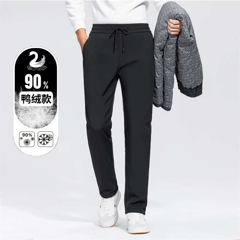 90白鴨絨羽絨褲男士保暖抗寒冬季松緊腰加厚休閑直筒彈力外穿男褲