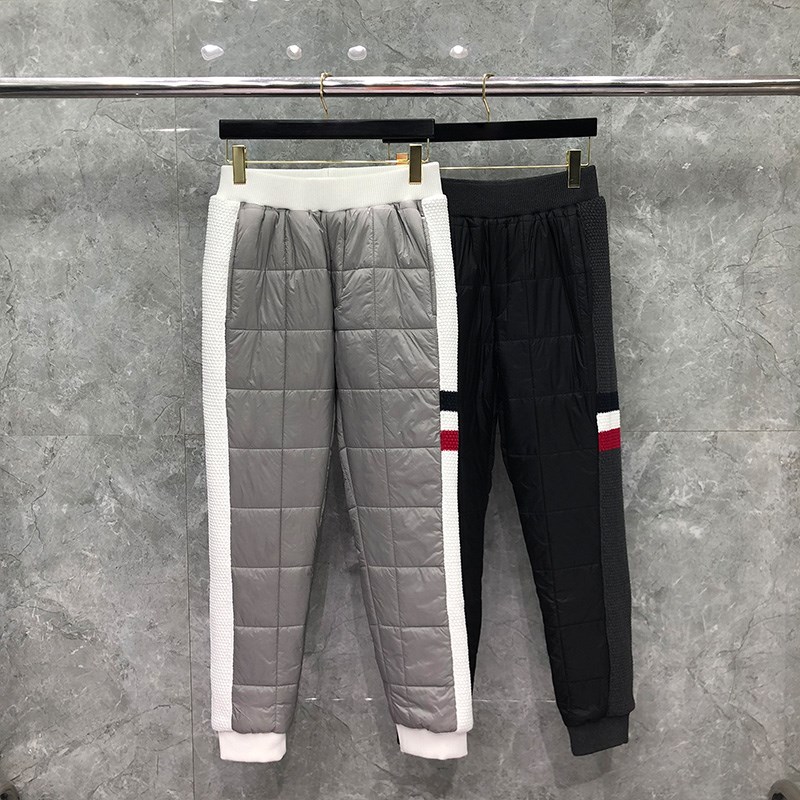 tb褲男外穿運動加厚冬季s寬松保暖紅白藍四杠束腳針織拼接羽絨棉