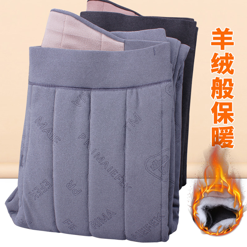 King Deer/鹿王羊絨褲秋冬男士彈力貼身長褲保暖居家休閑褲耐磨