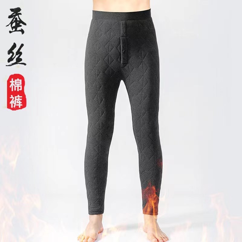 男士棉褲內穿加絨加厚秋冬季打底褲繡花保暖褲護腰護膝褲蠶絲絨褲