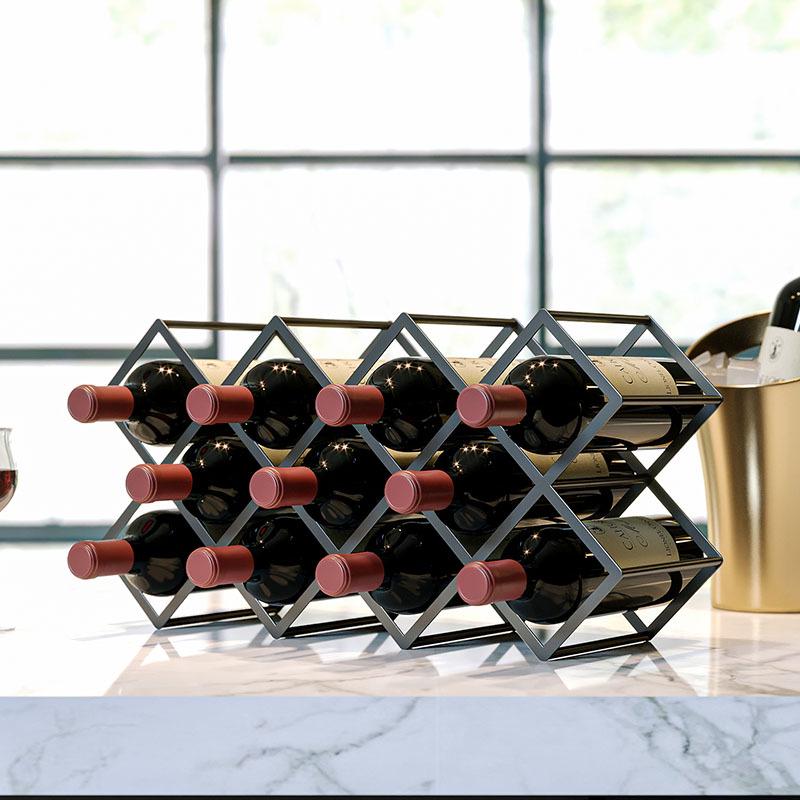 紅酒架格子菱形家用擺件輕奢高檔金屬創意酒柜斜放葡萄酒瓶展示架