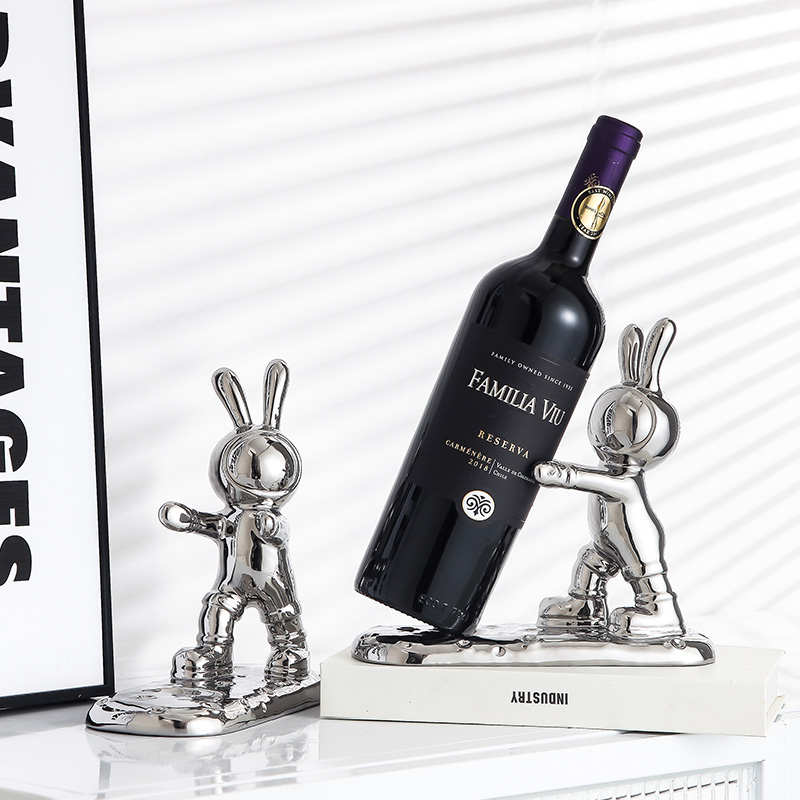 紅酒架擺件輕奢高檔客廳斜放擺設創意陶瓷兔子展示柜子酒柜裝飾品