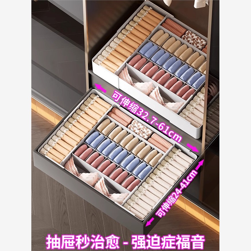 可伸縮內衣收納盒家用三合一內褲襪子衣物衣柜抽屜內置分隔整理盒