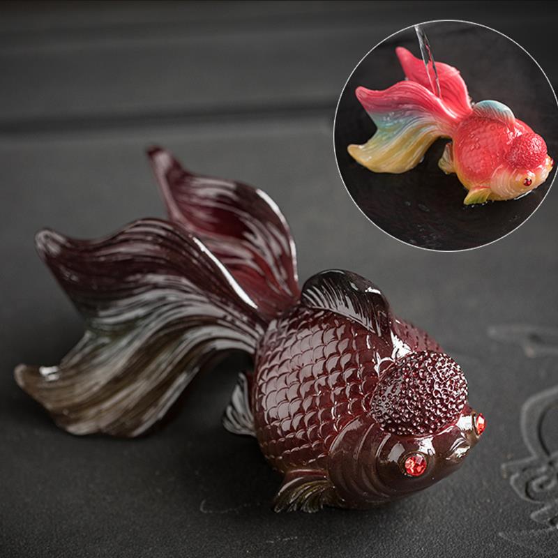 創意變色茶寵金魚擺件精品可養鯉魚茶桌高檔招財茶寵物錦鯉擺設