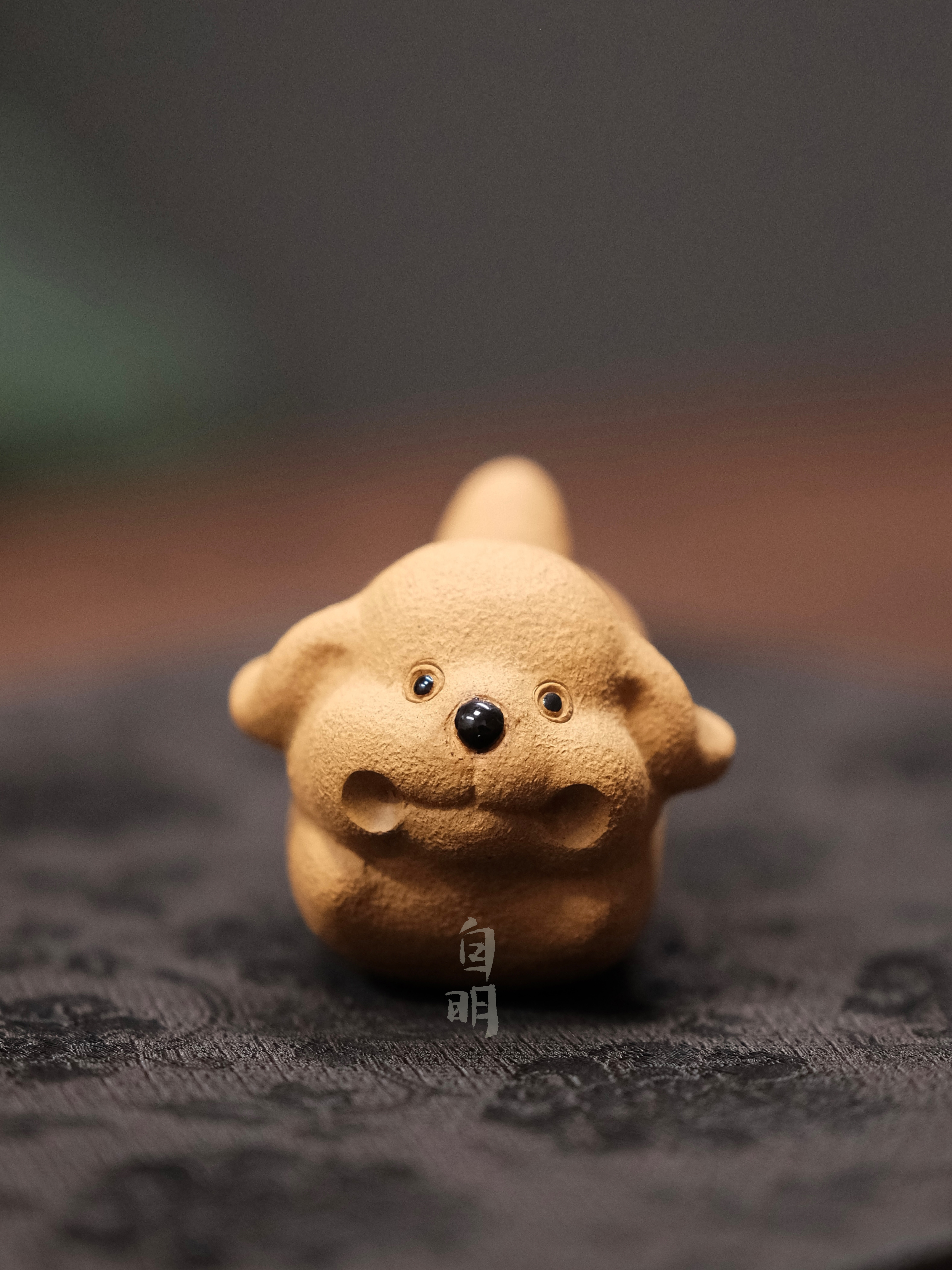 小金毛正版原創爆款紫砂小柴犬茶寵自明陶瓷手作桌面擺件茶玩可養